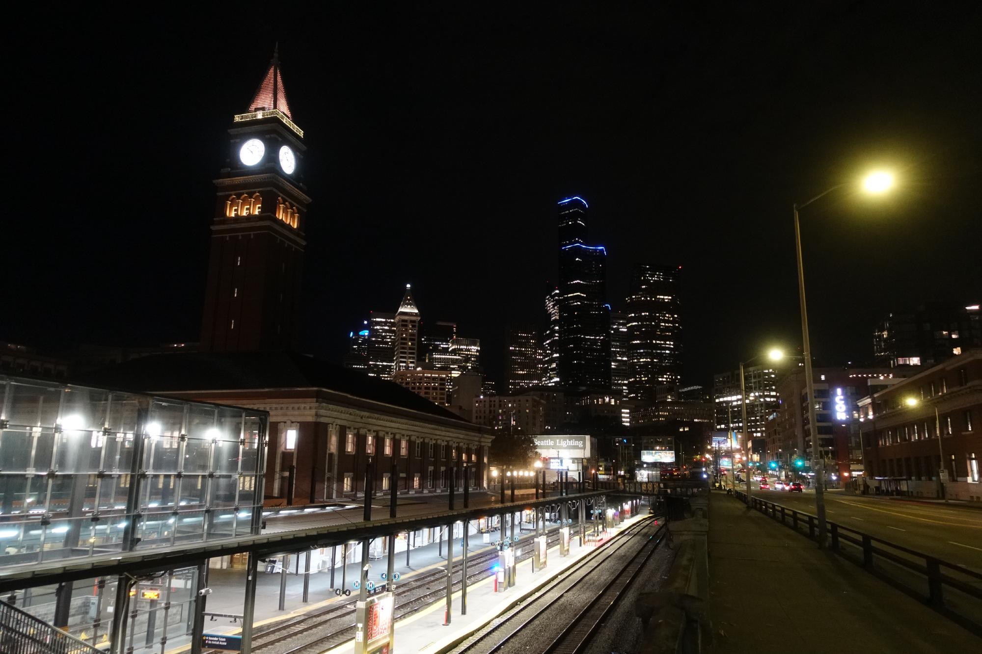 An der Landesgrenze gibt es dann noch einmal eine Passkontrolle, zusätzlich werden alle Früchte konfisziert. Der Herr vis-à-vis von uns kommt aber mit seinem riesigen Sack Trauben irgendwie davon. Weiter geht es laut hornend durch die Nacht nach Süden, bis wir endlich kurz nach 22:00 mit 1h Verspätung in Seattle eintreffen.