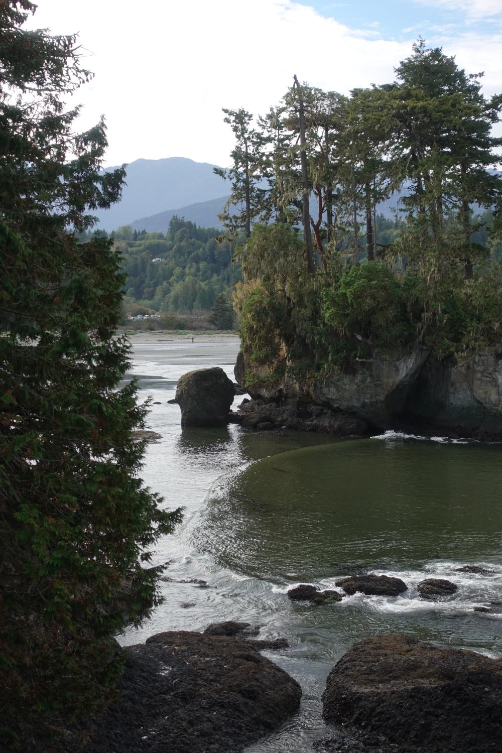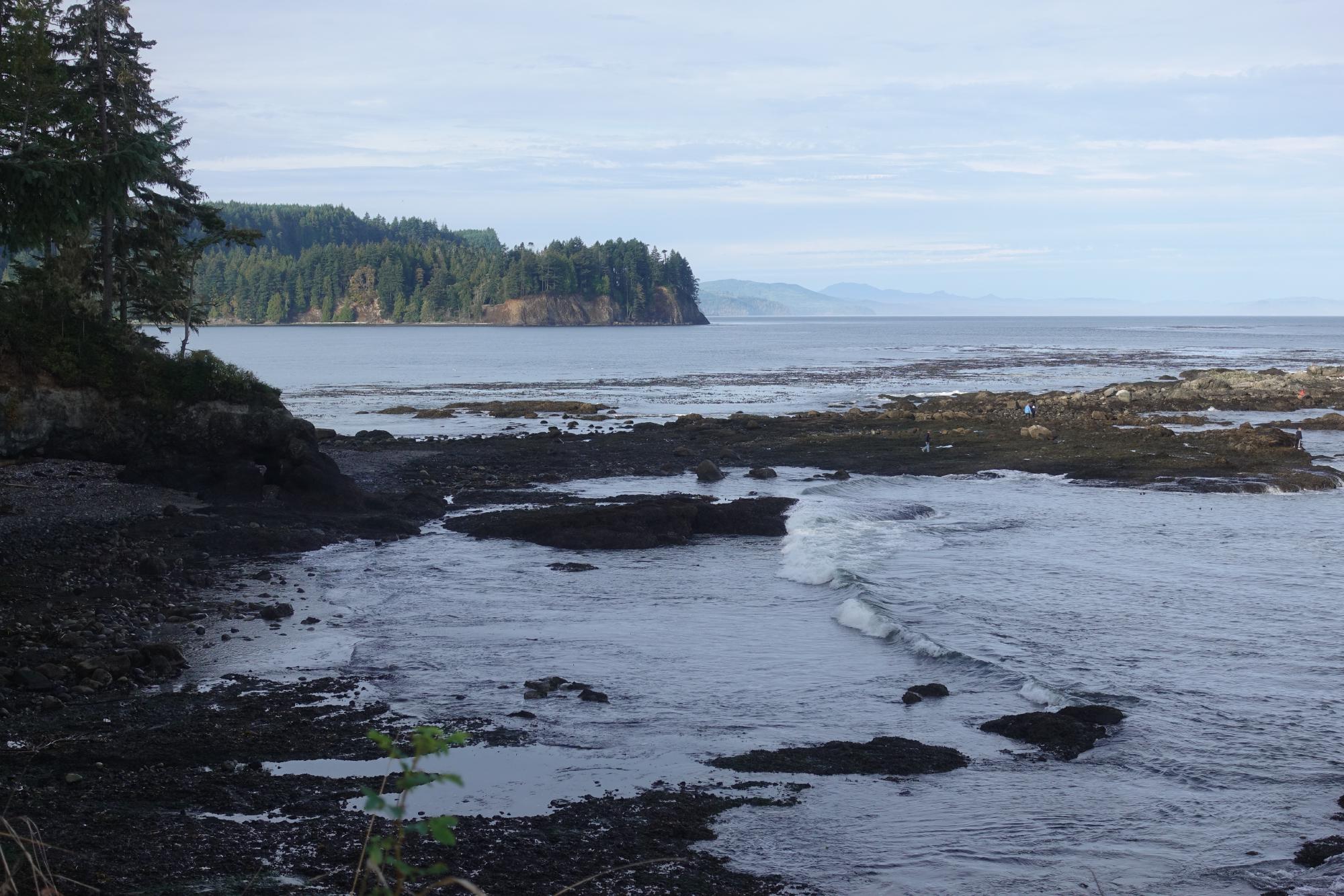 Heute Morgen starten wir von unter der Bettdecke die Heizung im Camper; so geht das Aufstehen doch schon viel besser! Nach unserem fürstlichen Frühstück sind wir heute schon um 9 Uhr fertig und machen zuerst noch einen Spaziergang über unseren Campingplatz Salt Creek. Wir sind hier gleich am Meer, es ist rauh und wunderschön! Heute sehen wir die gegenüberliegende Küste von Vancouver Island auch viel besser als gestern.
