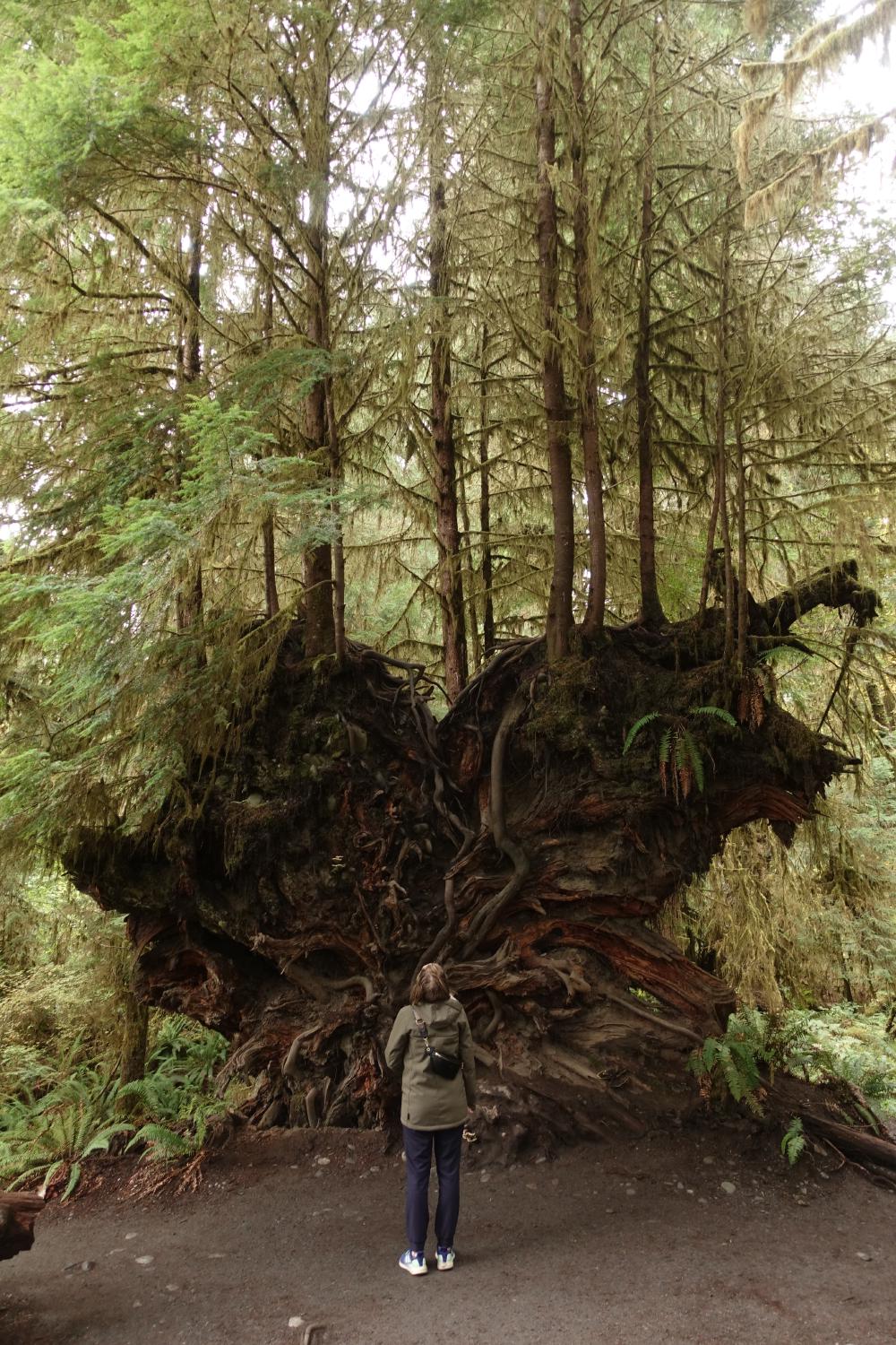 Danach beschliessen wir, noch einen kurzen Umweg in den Hoh-Regenwald zu machen. Dieser ist Teil des Olympic National Parks. Wir erleben also den ersten Nationalpark mit Visitor Center und echten Rangern, die durch die Wälder stürmen, weil jemand irgendwo einen “Elk” gesehen hat (Achtung amerikanisches English Elk = Hirsch, Elch = Moose). Die Hirsche seien in dieser Jahreszeit aggressiv und hätten nichts auf den Parkwegen zu suchen. Simone versteht die Welt nicht mehr; da hat es überall Pumas und Bären, vor denen sich niemand zu fürchten scheint, aber irgendwie versetzt ein gewöhnlicher Hirsch alle in Aufruhr?!?