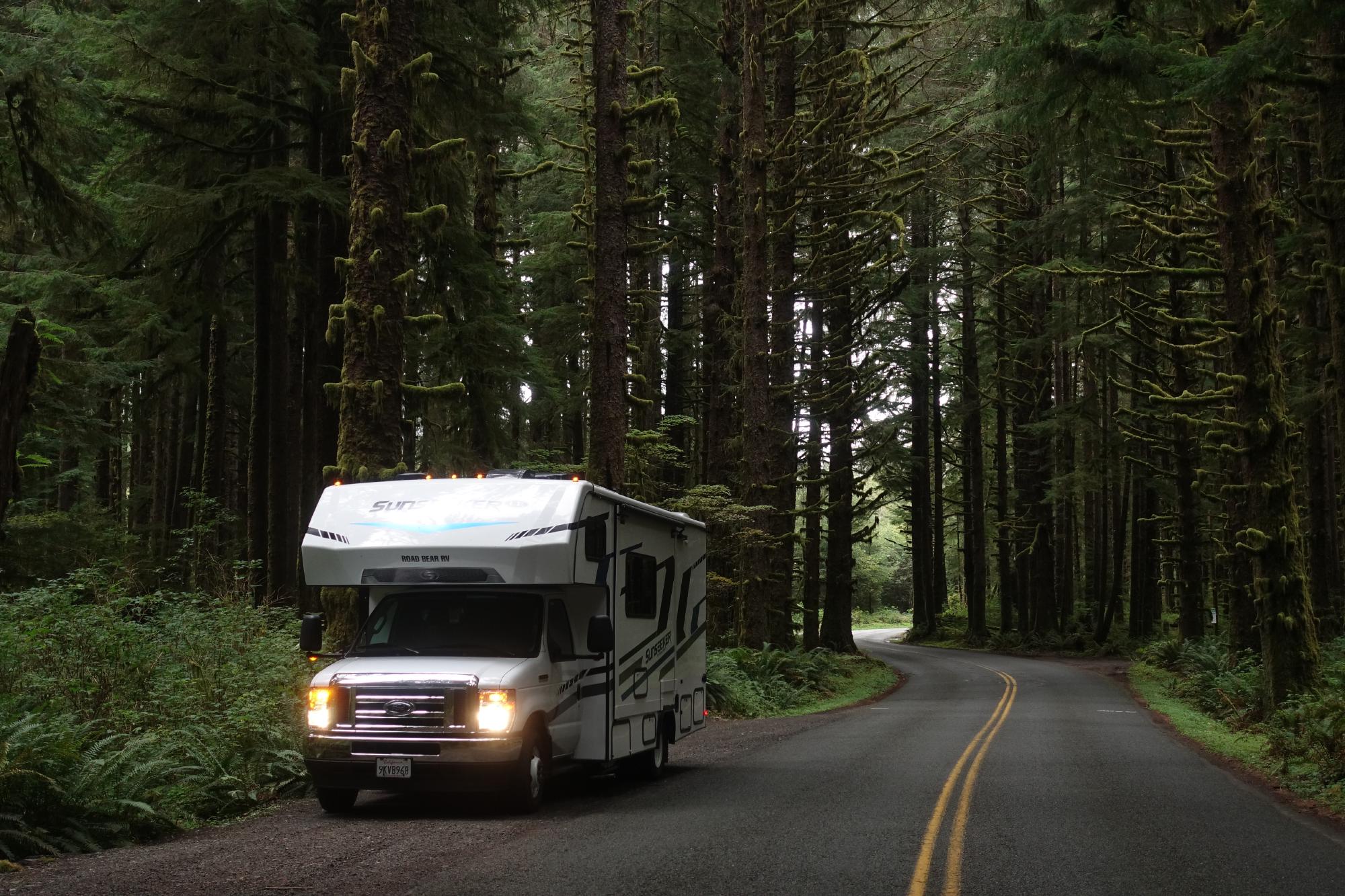 Wir fahren nicht mehr weit und stellen uns auf den Kalaloch-Campingplatz, wo wir aber nur noch einen Stellplatz zum Rückwärtsparkieren im Wald finden; das ist dann Next Level zum Einlotsen und einfahren, denn man sieht überhaupt nichts im Dunkeln. Aber die Amis sind ja alle mega hilfsbereit und so stehen schon bald zwei Leute da, die uns tatkräftig beim Manövrieren mithelfen.