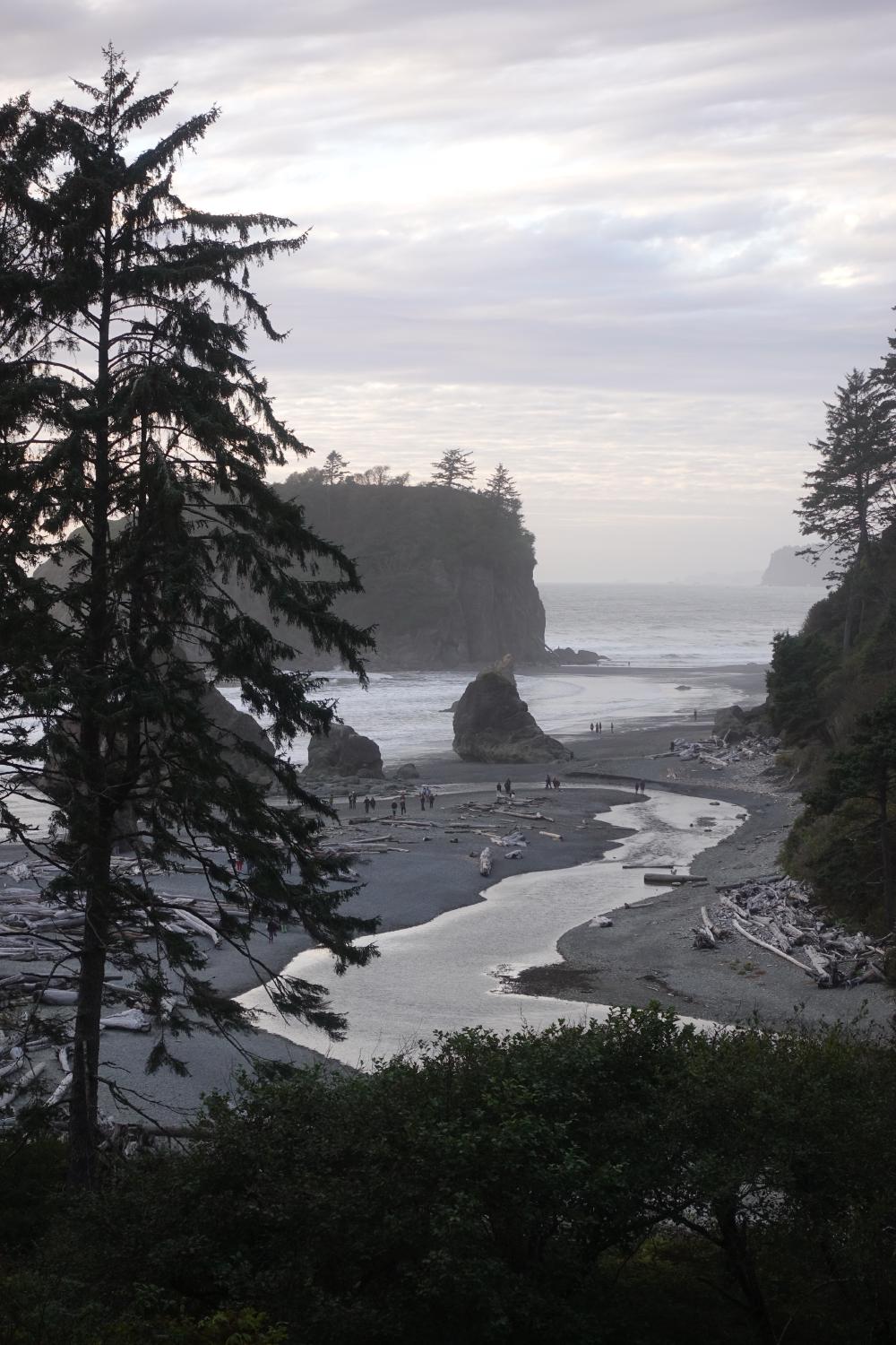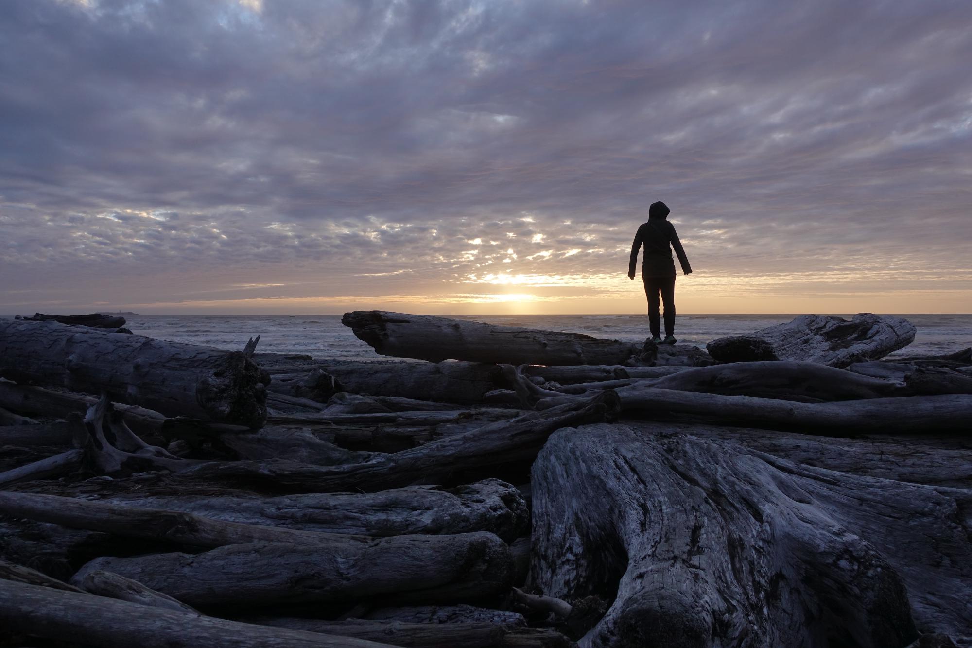 Der letzte Punkt auf dem Plan für heute ist Ruby Beach; eigentlich einfach wieder ein anderer Strand, aber auch hier mit mega viel schönem Schwemmholz und mega mystisch, uns gefällts in der Abendstimmung!