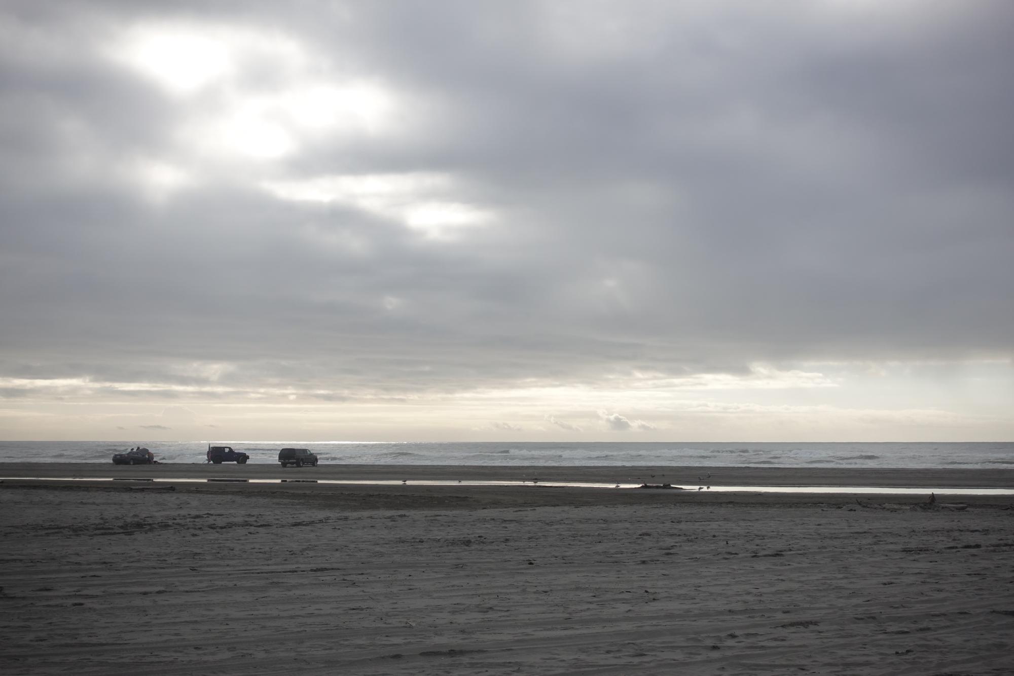 Wir fahren nach Long Beach, eine Tafel gibt an, dass es sich um den weltweit längsten Strand handeln soll. Das können wir nicht bezeugen, wir sind ihn nicht abspaziert, aber er ist auf jeden Fall nicht nur ca. 40km lang, sondern auch sehr breit. Am Sonntag fährt man hier anscheinend mit seinem PickUp über den Sand direkt an die Wasserfront. Na ja, uns passt es altmodisch zu Fuss auch ganz gut und wir machen einen ausgedehnten Strandspaziergang.