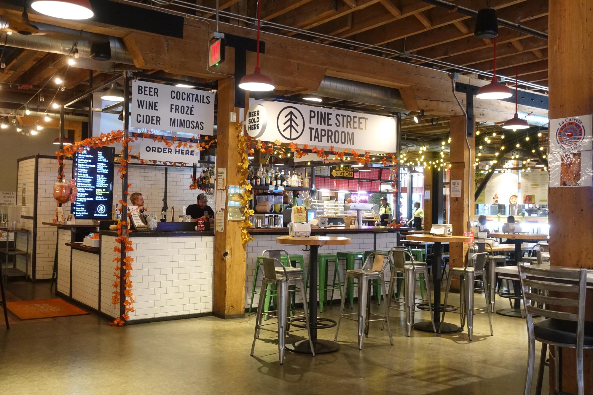 In der Innenstadt setzen wir uns erst einmal in einen FoodCourt. Anscheinend ist Portland bekannt für internationales Essen und wir freuen uns auf etwas anderes als Hamburger. Und tatsächlich, wir essen sehr fein thailändisch: Marco gebratene Reisnudeln und Simone ein Tofu-Curry.