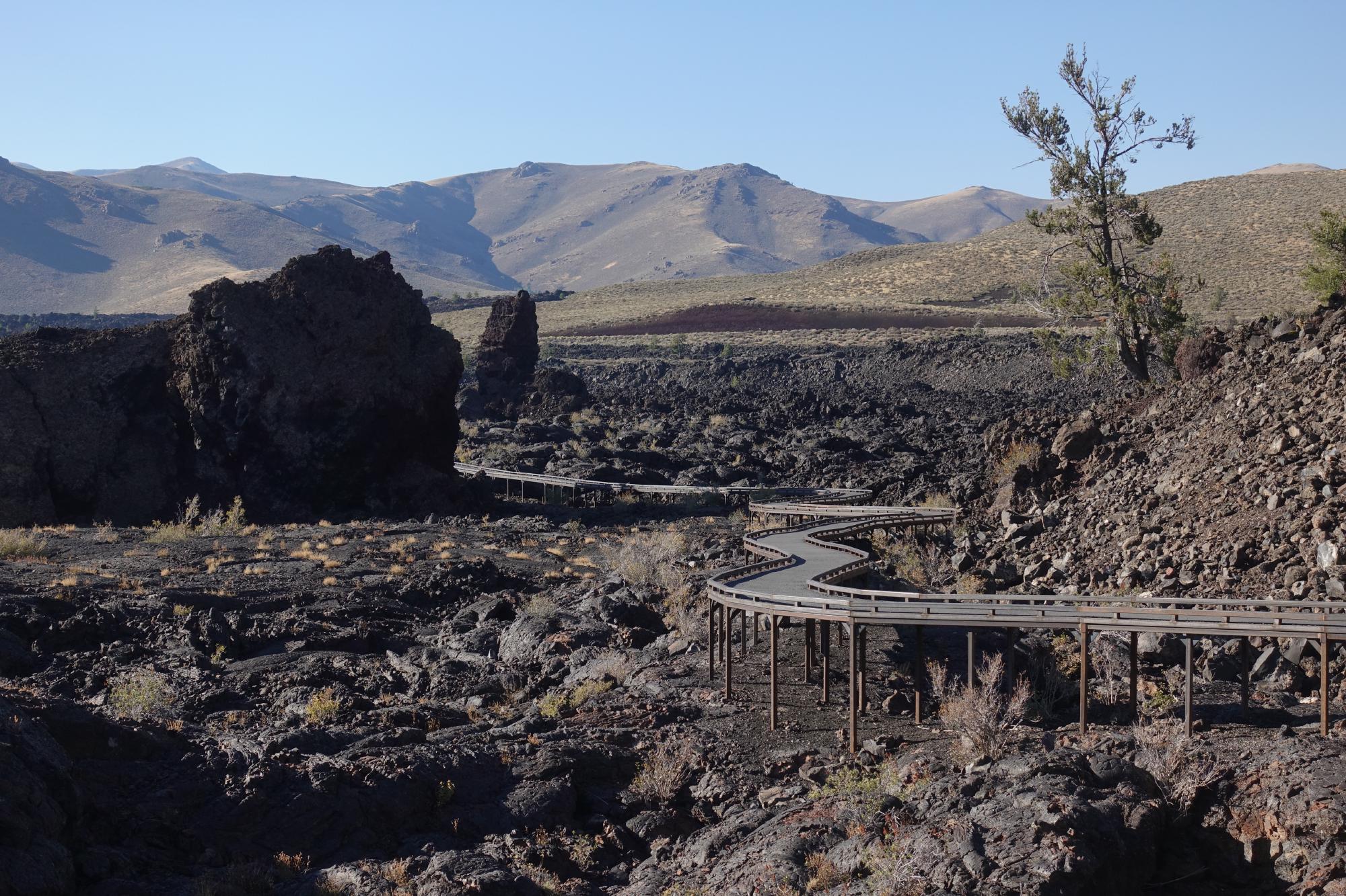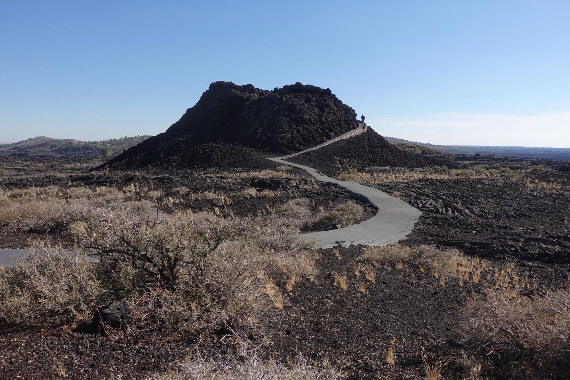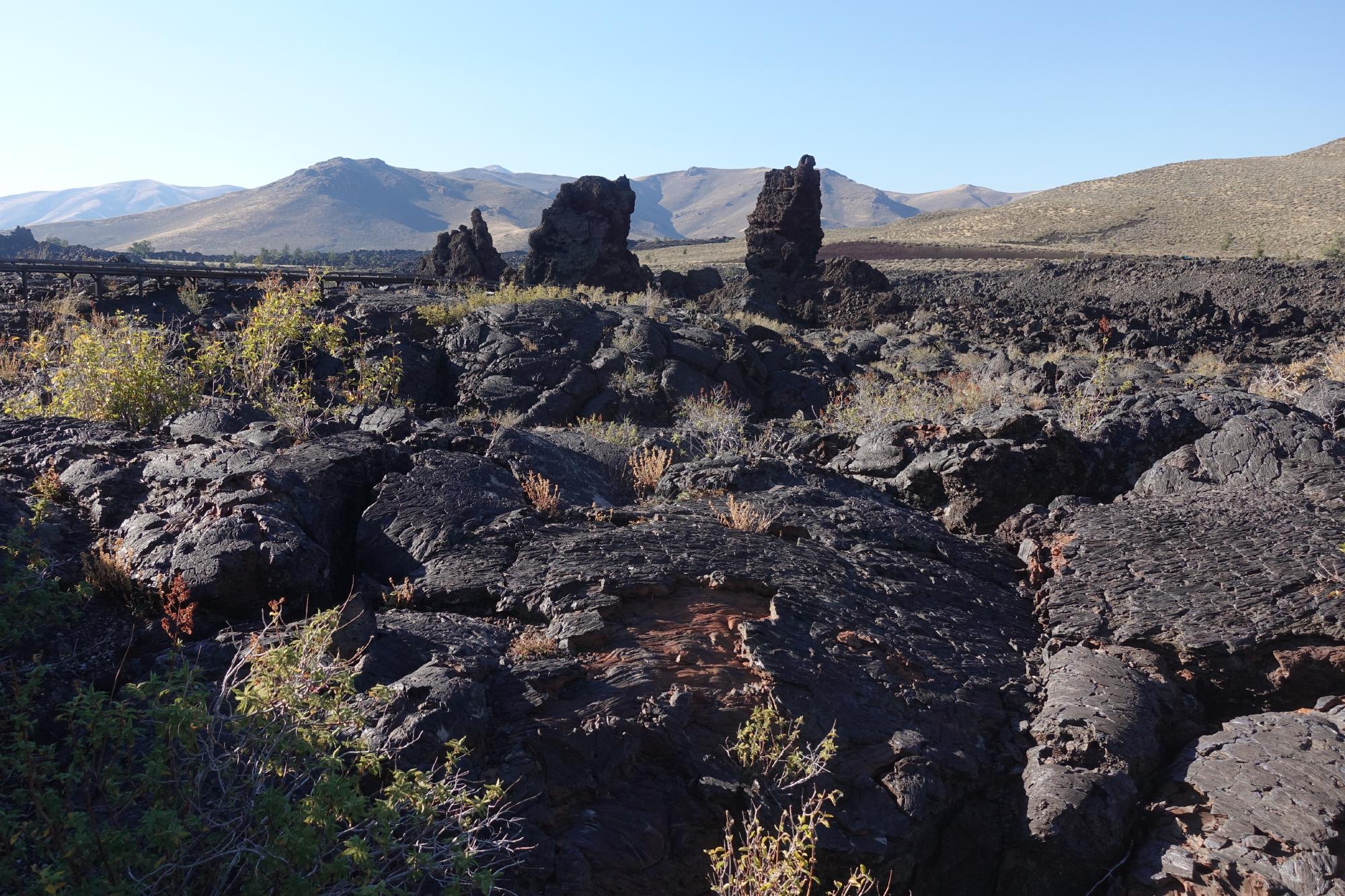 Twin Falls war für eine Weile der südlichste Punkt auf unserer Route, nun fahren wir in den Nordosten. Am Craters of the Moon Nationalpark machen wir einen Zwischenhalt, spazieren ein paar der Loops ab, essen etwas zum Zmittag und staunen über diese bizarre Landschaft. Die Steine sind ganz bröcklig und sie würden kaputt gehen, wenn da einfach jeder querfeldein durchläuft, darum hat es überall Wege und Strassen, die man ja nicht verlassen soll :)