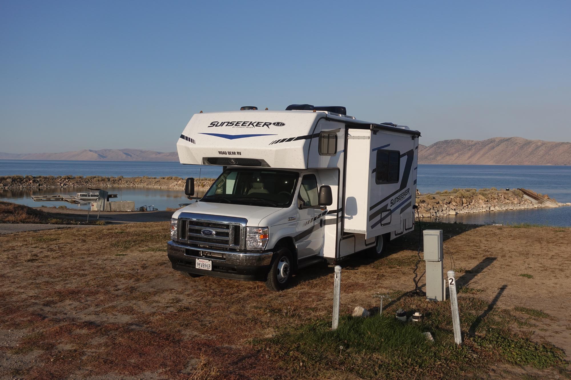 Wir beschliessen, den heutigen Tag ganz gemütlich zu gestalten. Wir drehen noch eine kleine Runde über unseren Campingplatz, bevor wir den Camper wieder reisefertig machen und losfahren. Als wir nach Alpine kommen und hier wieder Handynetz haben, stellen wir uns auf einen Parkplatz und laden den Blog hoch, senden ein paar Ferienfotos umher, telefonieren in die Schweiz und schliesslich stehen wir so lange auf diesem Parkplatz, dass wir beschliessen, gleich noch einen Zmittag zu essen. Anschliessend fahren wir gestärkt los zum Bear Lake. Der liegt etwa auf halben Weg nach Salt Lake City und wir haben dort einen Campingplatz gesehen, der uns passt. Wir fahren ca. zwei Stunden und kommen unterwegs in den Bundesstaat Utah hinein.