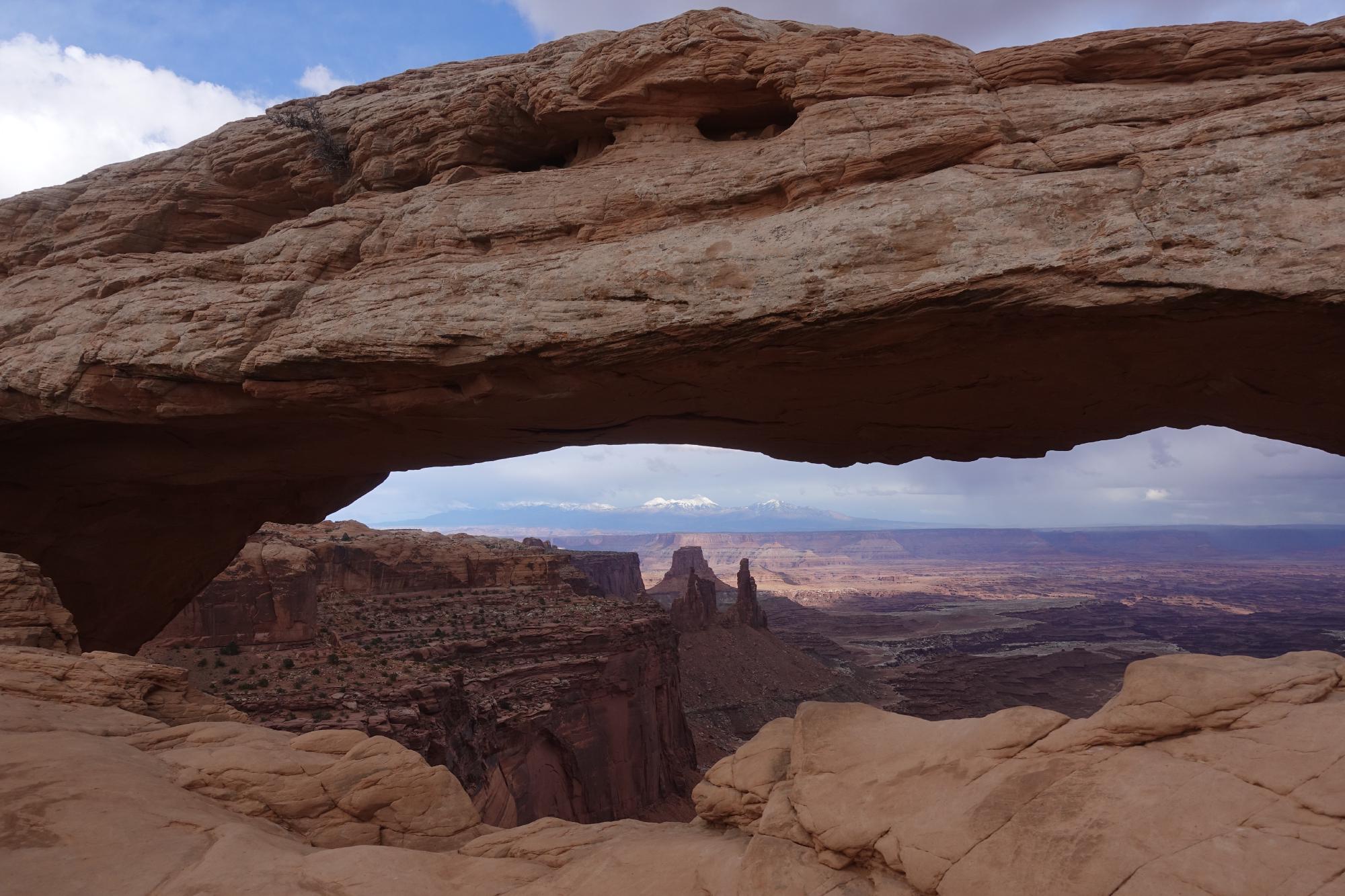 Beim Mesa Arch machen wir drei Runden um den Parkplatz, bis eine genügend grosse Parklücke für uns frei wird, und kommen schliesslich heute doch noch dazu, eine imposante Bogenformation zu besichtigen.
