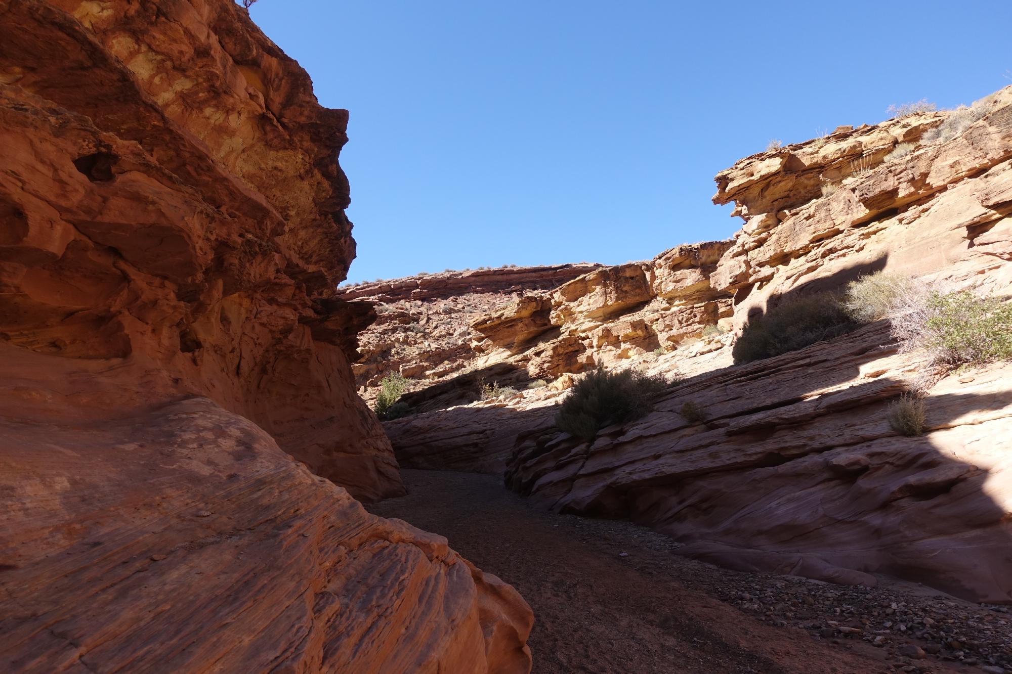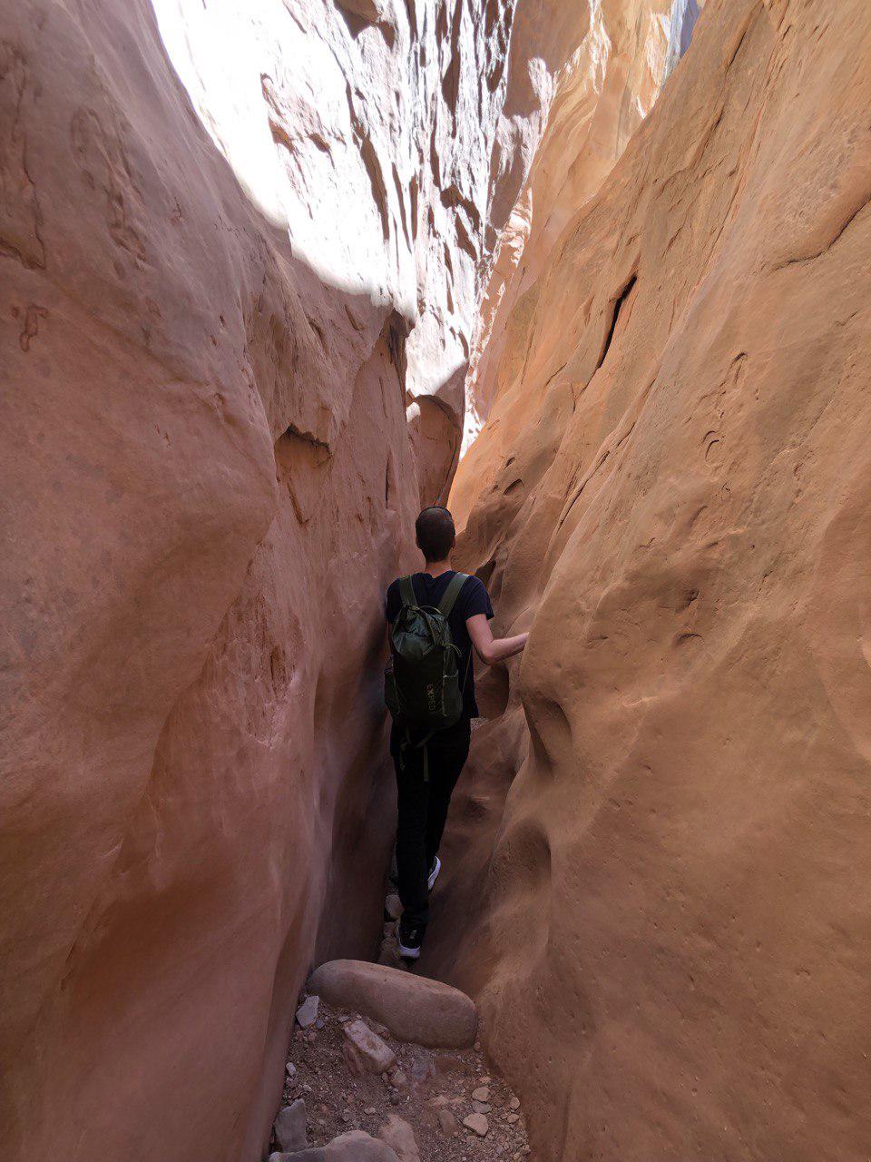 Nach einem Müesli-Zmorge gehts los. Zuerst haben wir uns den Little Wild Horse Canyon vorgenommen. Man kann hier am Grunde des Canyons eine Rundwanderung machen. Die Felsformation ist mega eindrücklich, zeitweise wird es so eng, dass Kreuzen nicht möglich ist. Entsprechend dauert es eine Weile, bis man durch diese Stellen durch ist. Wir haben nicht genug Zeit, um die ca. 6-stündige Rundwanderung zu machen. Aber eineinhalb Stunden liegen drin und wir klettern in den Canyon hinein und drehen halt einfach irgendwann wieder um.