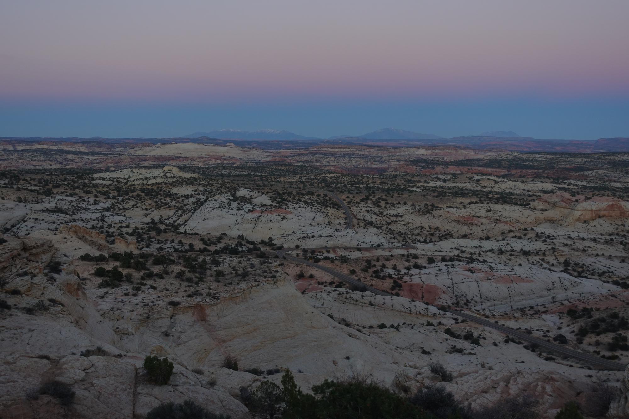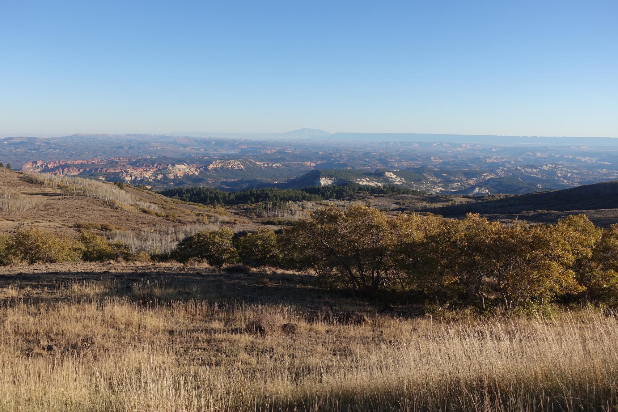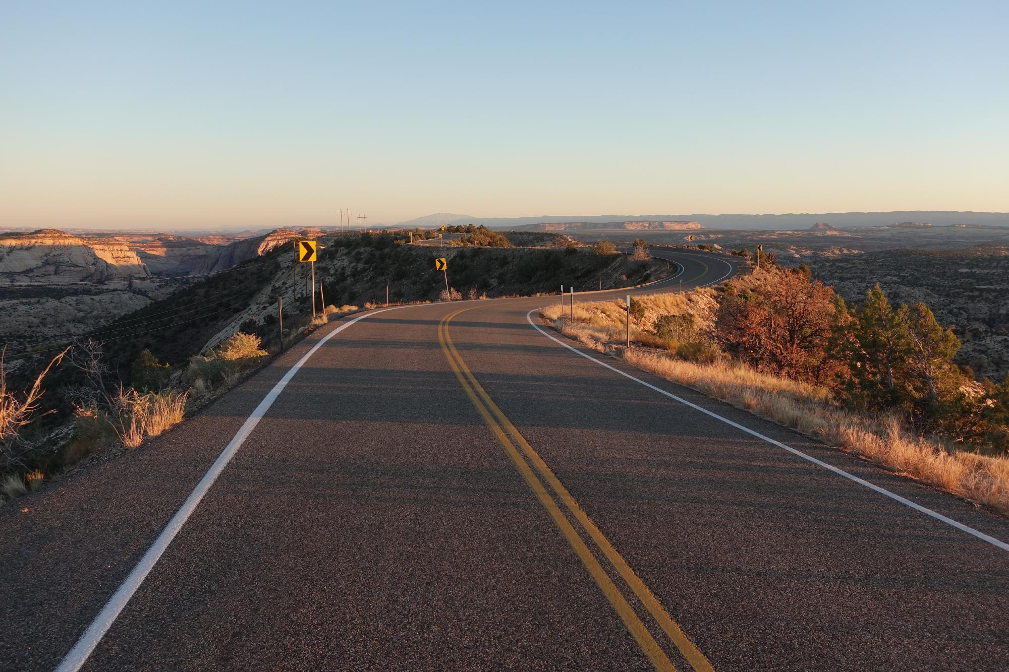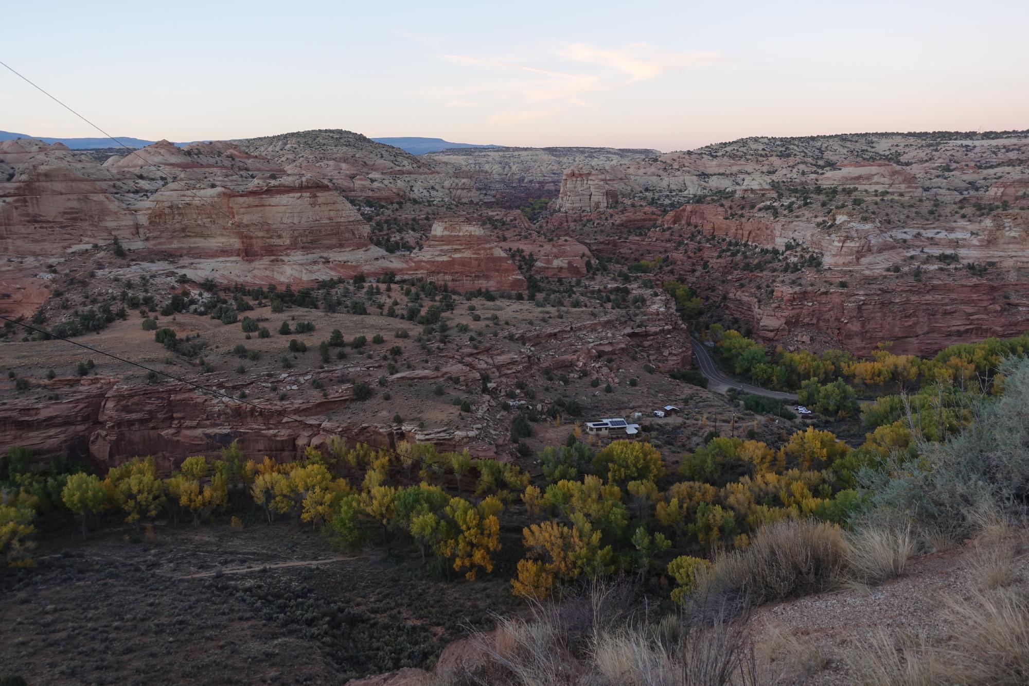 In der Abendstimmung spulen wir nochmals einige Kilometer. Wir fahren über die Scenic Route 12 und überqueren dabei rasch einen Pass auf knapp 3000 müM. Erstaundlicherweise hat es bis ganz oben Laub- und Nadelbäume… Wir haben da im Biologie-Unterricht wohl etwas falsch verstanden, nach unserem Wissensstand dürfte es so etwas gar nicht geben!