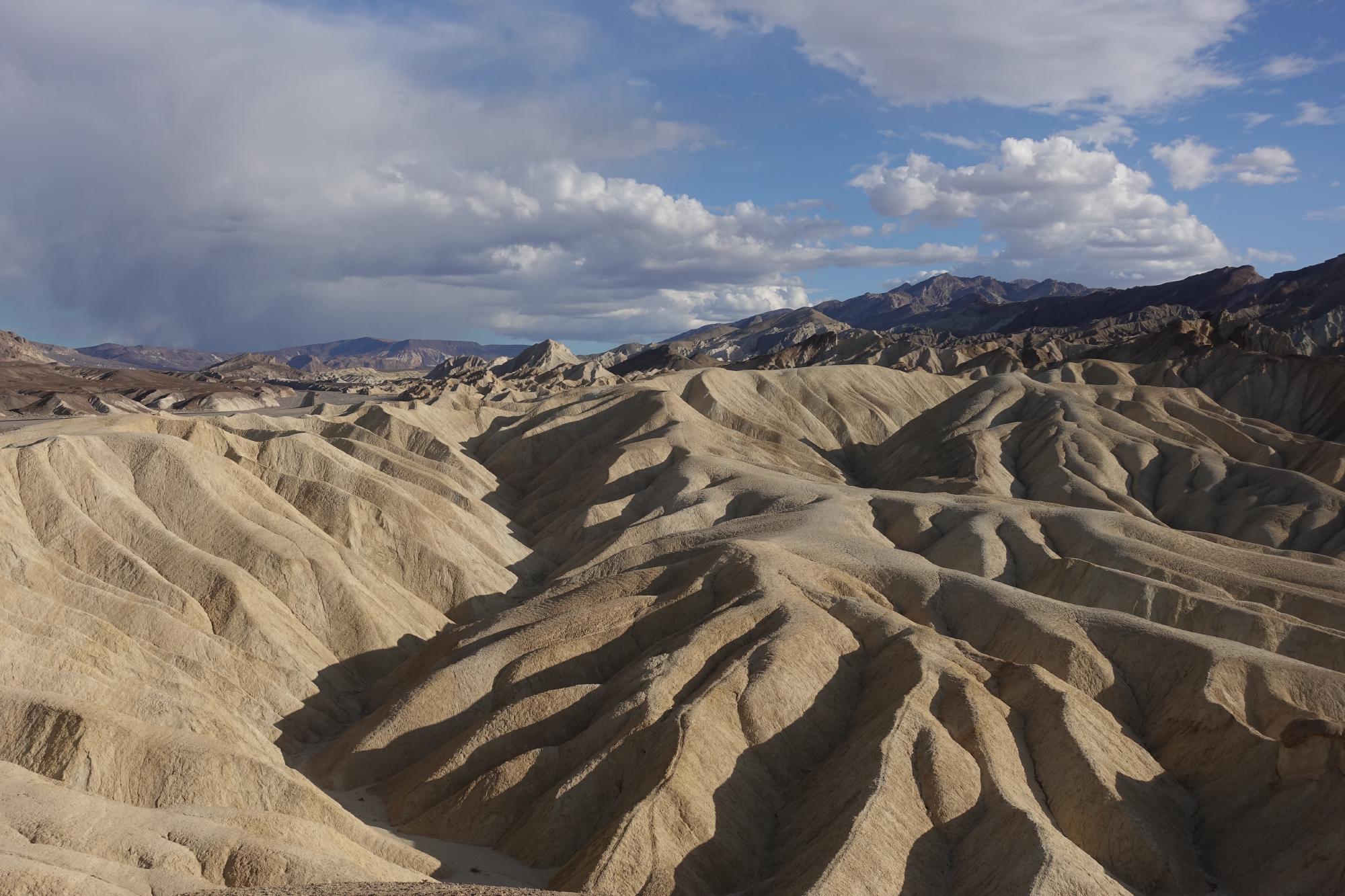 Beim nächsten Viewpoint, dem Zabriskie Point, bestaunen wir die Gesteins- und Sandformationen.