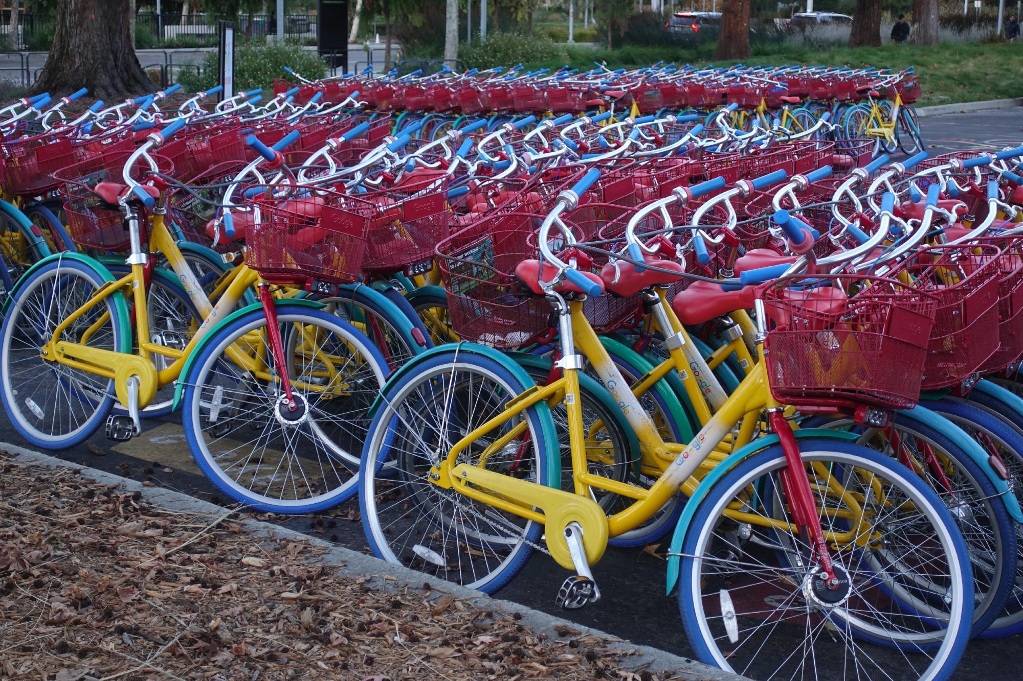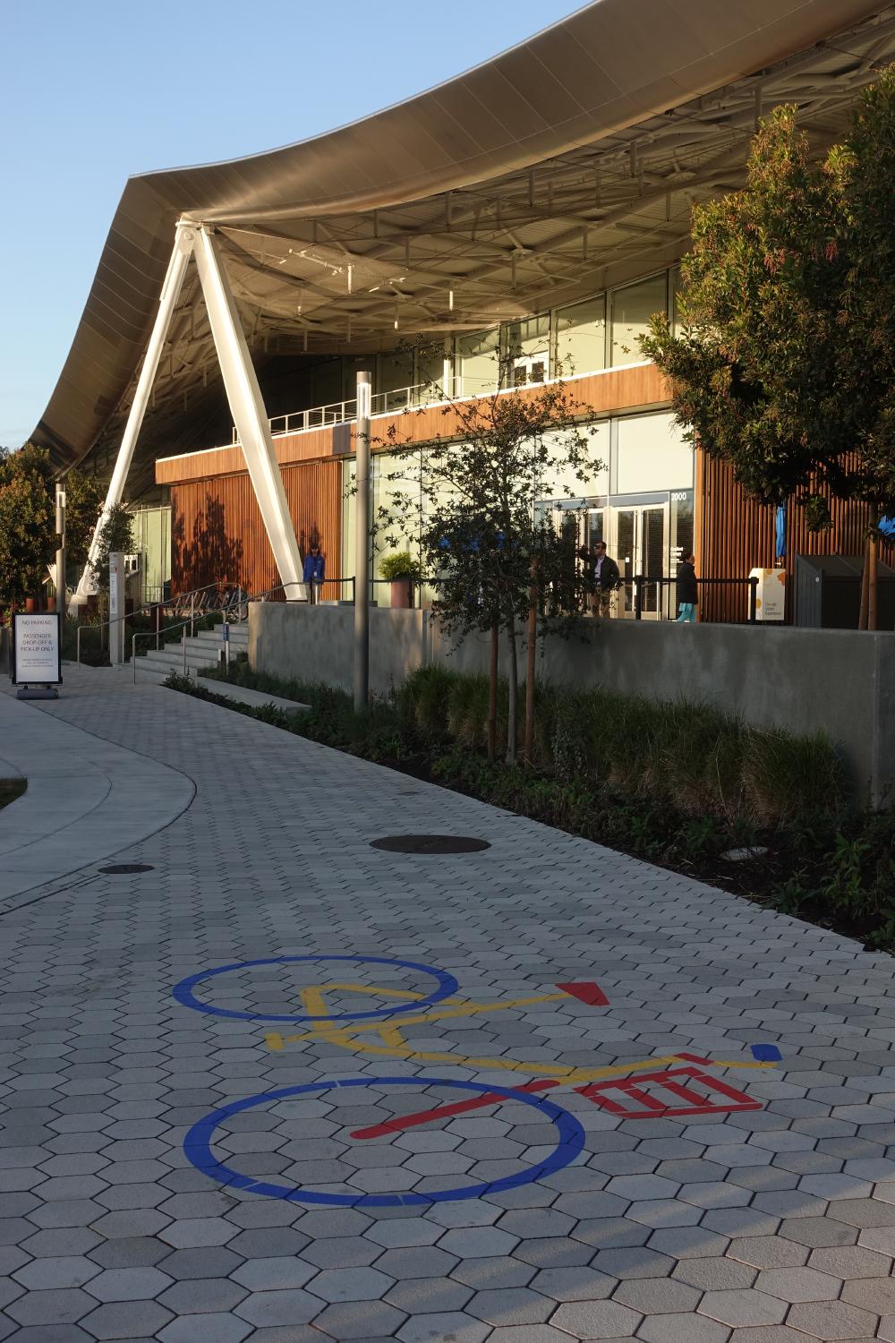 Ein paar Strassen weiter halten wir nochmals an, dieses Mal auf dem Google Campus. Hier fühlen wir uns ein bisschen wie am Temple Square in Salt Lake City: an jeder Ecke steht ein Mitarbeiter in einer blauen Jacke und erklärt uns den Weg, oder was man hier alles anschauen kann. Auf dem Campus verteilt stehen überall Android-Männchen und Marco erklärt, dass die verschiedenen Versionen des Betriebssystems nach Süssigkeiten benannt werden. Wir finden Kitkat, Jelly Bean, Lollipop, eine witzige Idee. Hier gibt es ausserdem Google-Velos, die man benutzen kann, ein ganz tolles, richtig europäisches Café (schade kommen wir mit vollem Bauch) und in der riesigen Parkanlage ein paar Kunstexponate.