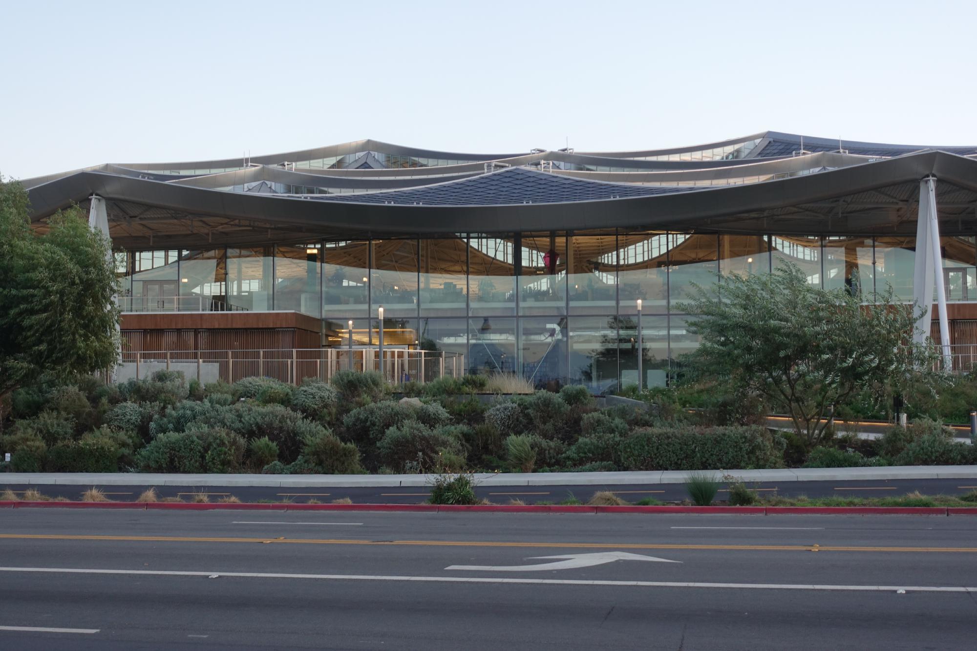Unser erster Zwischenstop wäre eigentlich eine Shoppingmall, die einen spezifischen Laden beinhaltet, den es nur in Amerika gibt. Nachdem wir aber den Komplex in fast dreissig Minuten im dichten Verkehr eineinhalb Mal umrundet haben und sich keine der Einfahrten in Parkplätze oder Parkhäuser als hoch genug für unsere 12’ erwiesen hat, geben wir dieses Unterfangen auf und fahren direkt weiter zum Visitor Center des Apple Campus. Wir werden fürstlich behandelt, man öffnet extra einen Parkplatz für unseren RV und weist uns ein. Wer Bilder vom Hauptsitz von Apple kennt, stellt sich nun sicher vor, dass wir in diesem riesigen Donut herumstiefeln. Aber leider nein, das Visitor Center ist ein separates Gebäude, das im Prinzip einfach ein etwas grosszügigerer Apple Store ist… Das beindruckt uns nicht sehr (Marco ist ja sowieso schon kein Apple-Fan) und wir sind schnell durch.