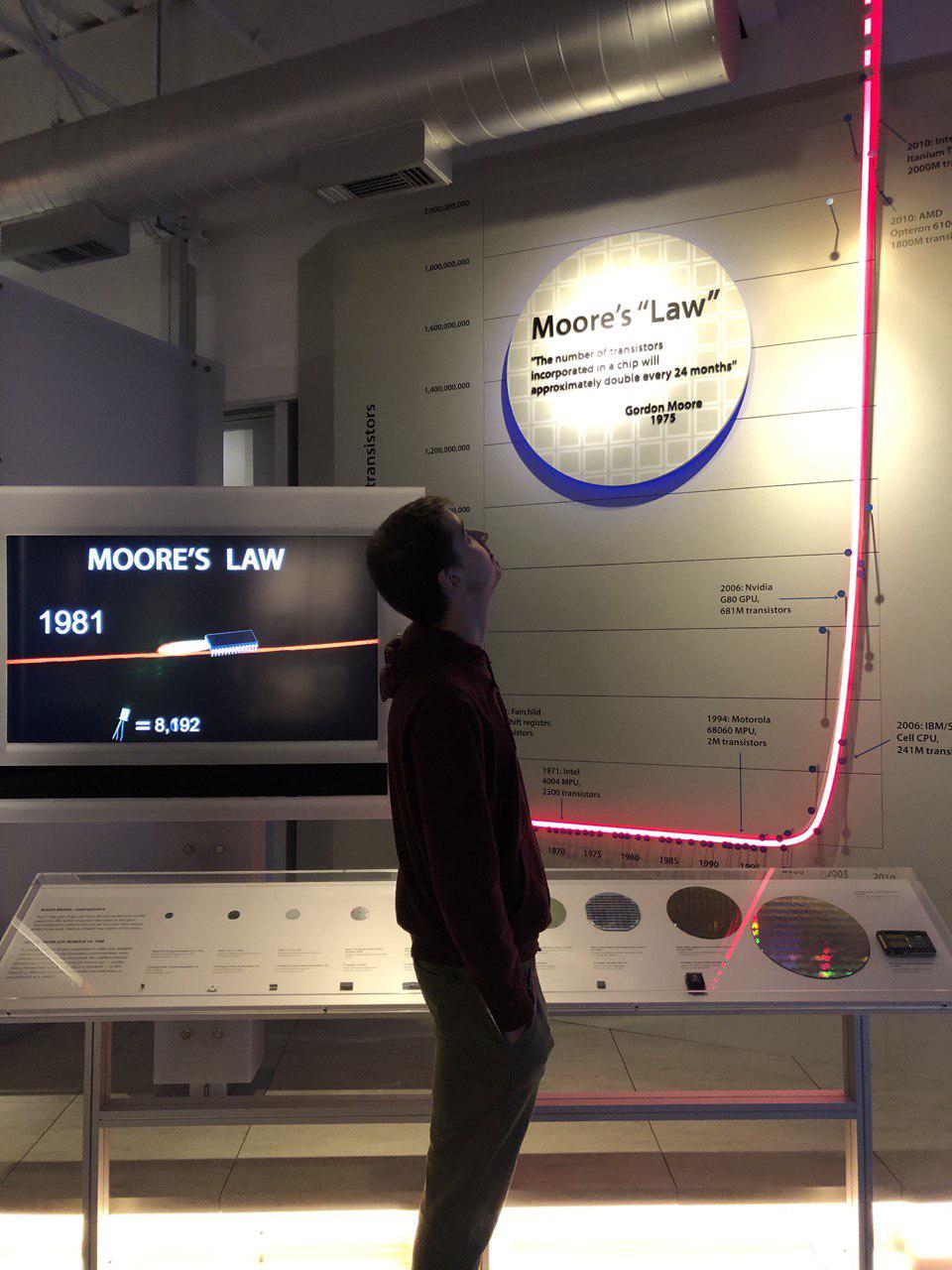 Mit neuem Elan statten wir als nächstes dem Computer History Museum einen Besuch ab. (Ist Simone nicht tapfer? Eine Tech-Firma reiht sich hier an die andere, und dann wagt sie sich sogar noch in ein Museum hinein!) Hier gibt es von alten analogen Rechengeräten wie Rechenschiebern bis zu grossen Servern und Supercomputern alles zu sehen. Wir haben nur noch knapp eineinhalb Stunden Zeit, bevor das Museum schliesst und schauen uns an, was uns ins Auge springt. Wir finden eine Übersicht über die Halbleiterproduktion, an der Marco ganz anschaulich erklären kann, was er drei Jahre bei onsemi den ganzen Tag so gemacht hat. Alles in allem hat es aber viel zu viele Sachen, darum sind wir gar nicht so böse, als wir um 17 Uhr vor die Tür gestellt werden.