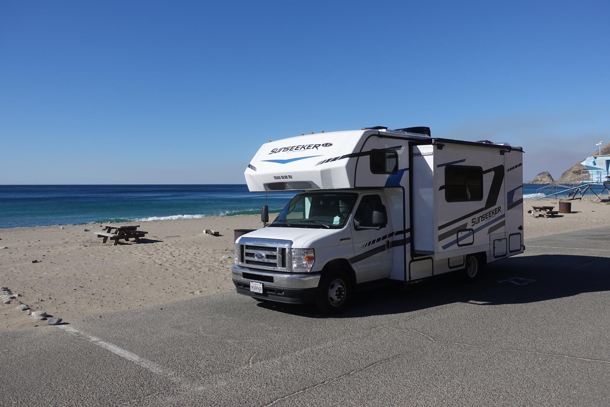 Und dann gehts noch weiter über stockende sechsspurige Autobahnen bis nach Encinitas etwas nördlich von San Diego, wo wir einen schönen Campingplatz direkt am Strand gebucht haben. Hier gibts eine Kürbissuppe und dann ist Schlafenszeit!