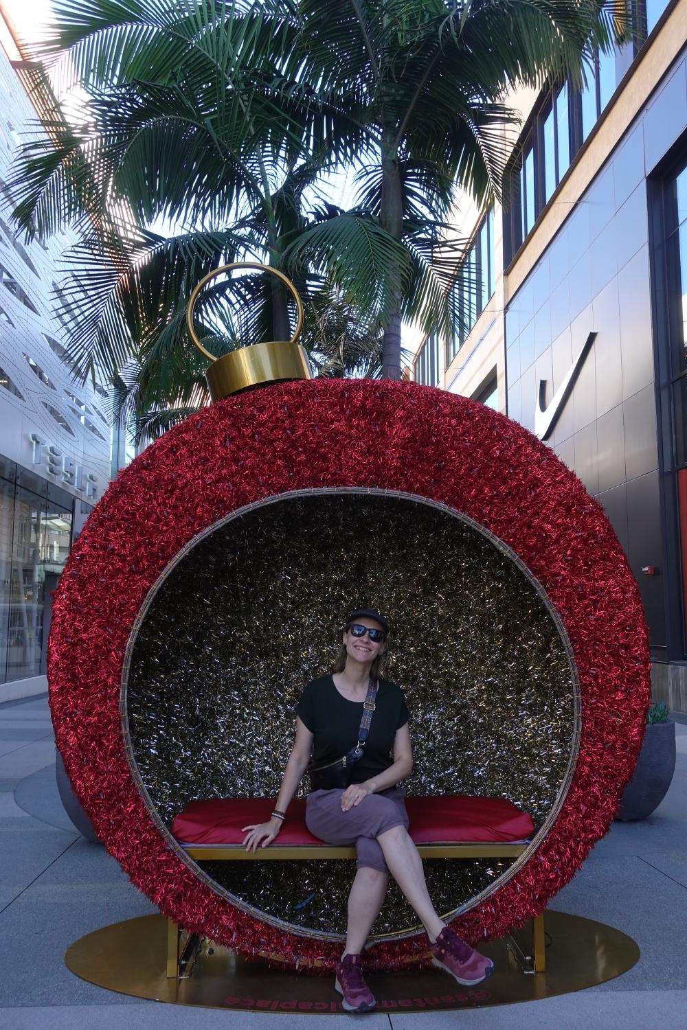 Wir folgen dem Fussgängerstrom in die Innenstadt und lassen uns etwas treiben. Hier haben sie bereits die Weihnachtsdeko aufgebaut! Simone freuts, Marco schüttelt nur den Kopf. Aber zugegeben, zu Hause im kalten Nebel würde sie viel besser hinpassen als hier unter den Palmen…