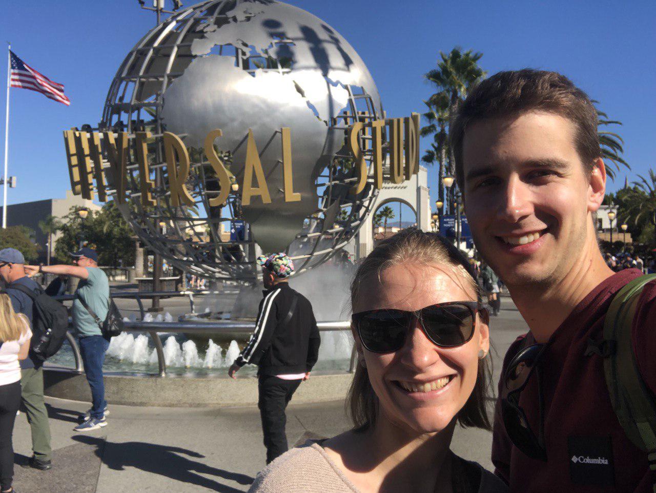 Als wir angezogen und eingecremt sind, spazieren wir los über den Campingplatz zum Eingang und buchen uns ein Uber (das sei die beste Möglichkeit, hier zu reisen, steht auf dem Flyer des Campingplatzes). Der Fahrer kommt kurz darauf an, wir steigen ein und werden feudal die halbe Stunde durch den obligaten Stau auf der Autobahn zu den Universal Studios chauffiert. Wir stellen fest, dass in einem Auto ein ganz anderes Fahrgefühl herrscht als in unserem Camper, wir schlängeln uns elegant durch den Verkehr und das Fahrgeräusch ist erst noch richtig angenehm! Simone hat Freude, dass wir uns endlich einmal den Luxus eines Taxis gönnen; fast sieben Jahre sind wir nun schon gemeinsam unterwegs, und heute sitzen wir das erste Mal zusammen in einem Taxi! Der Uber kostet uns übrigens etwa so viel wie das Tagesparking, das wir hiermit sparen :)